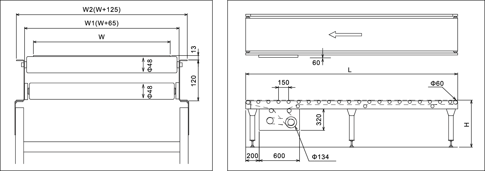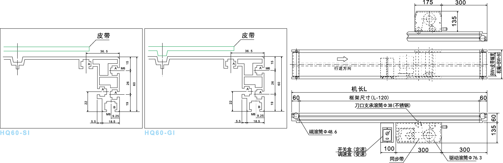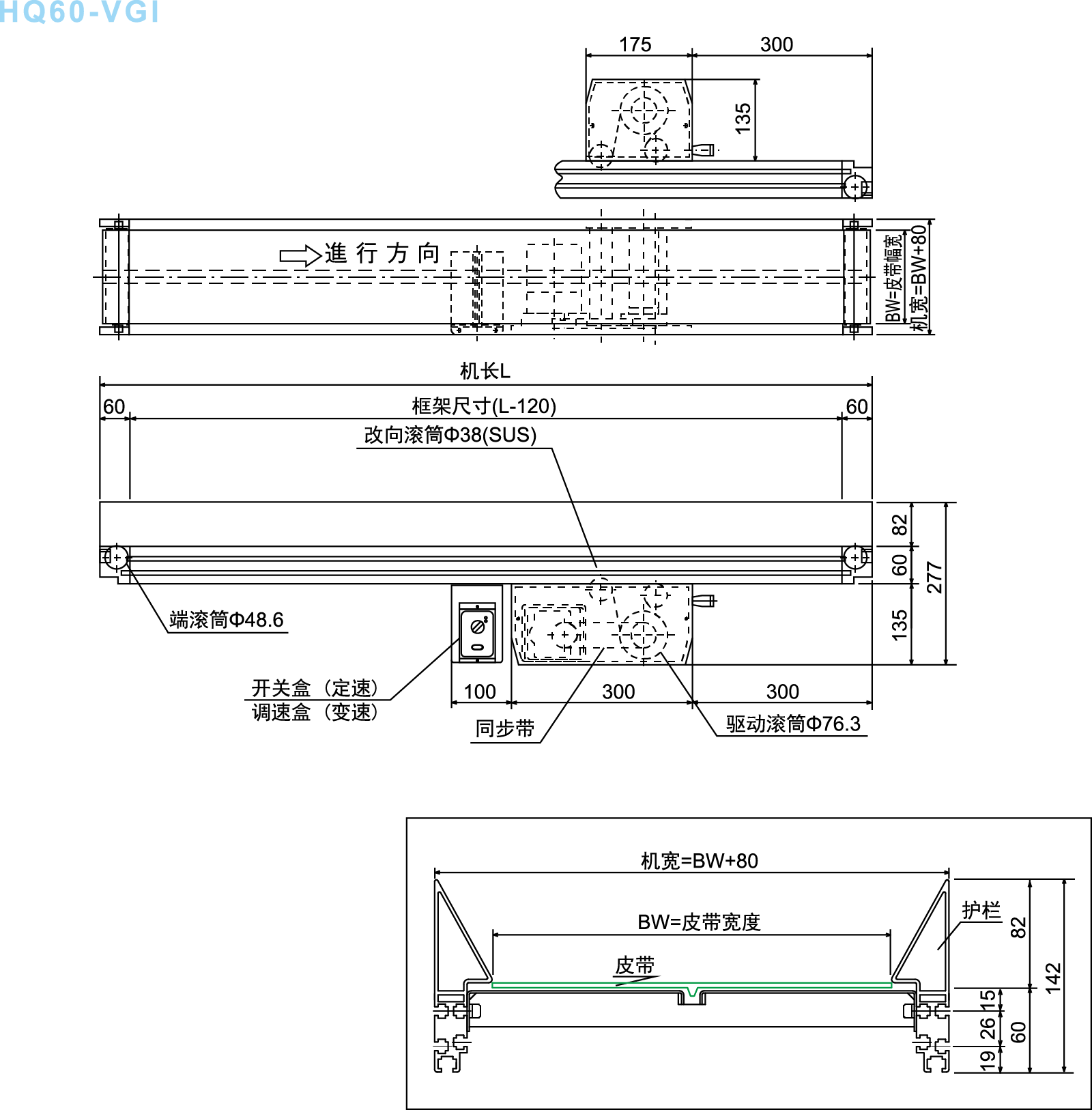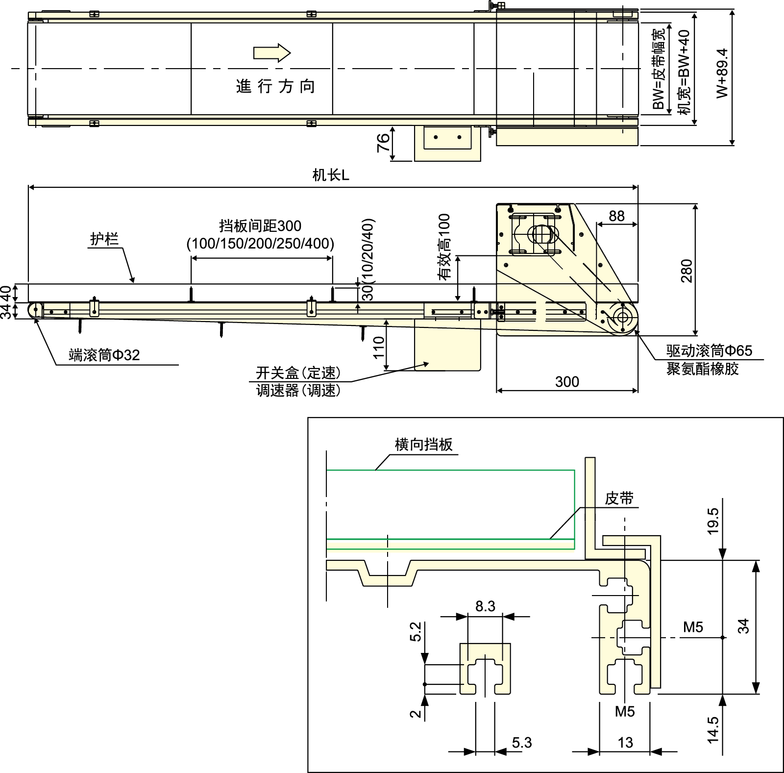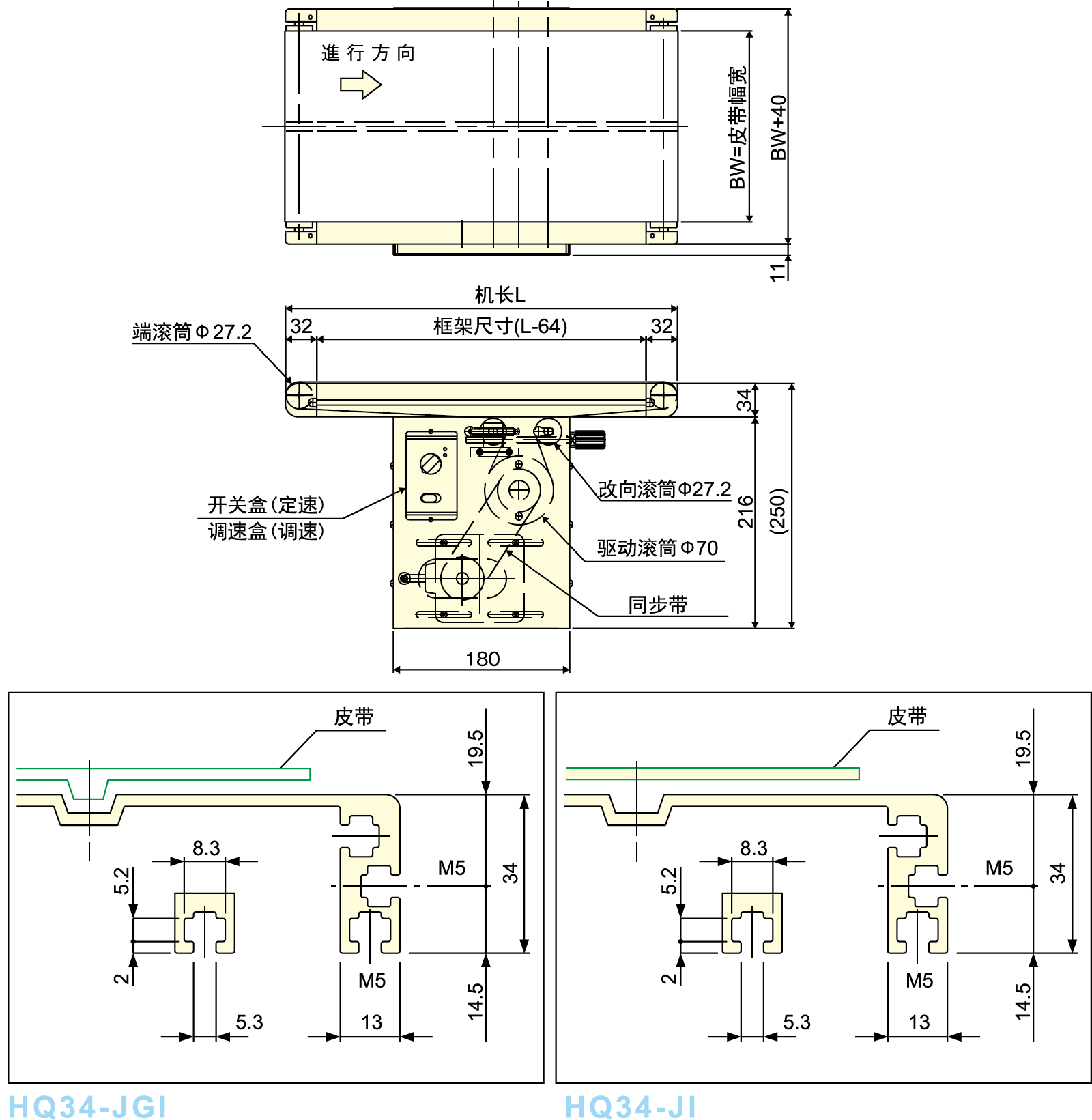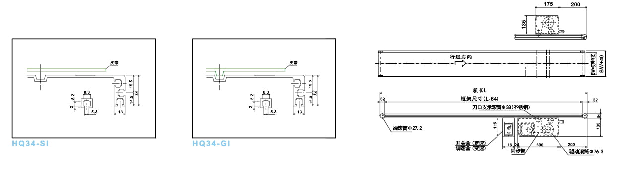 ● Este é o tipo padrão de transportador de correia de 34 mm, o centro de acionamento é movido pela correia dentada.