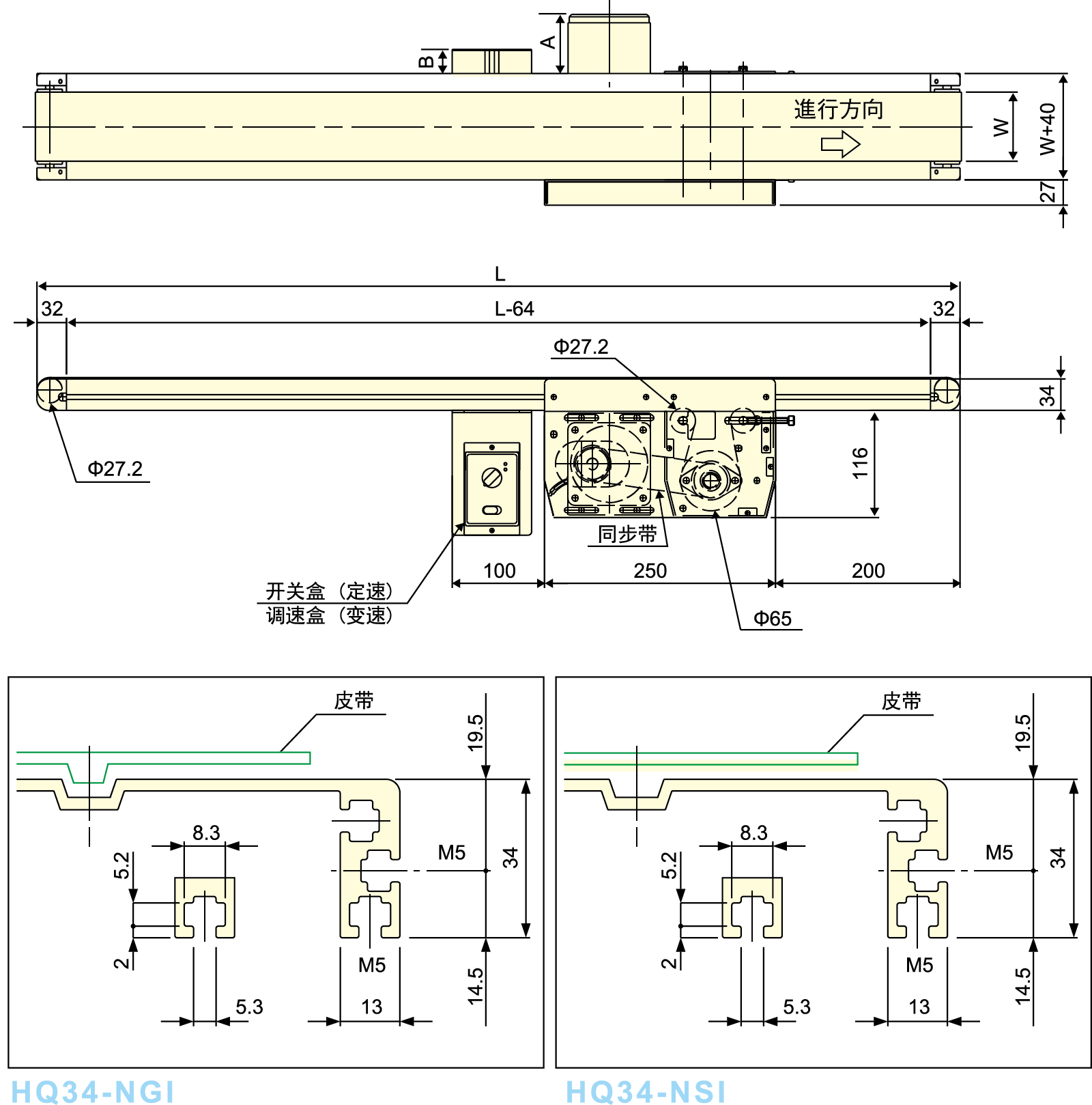 Tipo padrão SI ● Este é o tipo padrão de transportador de correia de 34 mm, o centro de acionamento é movi...