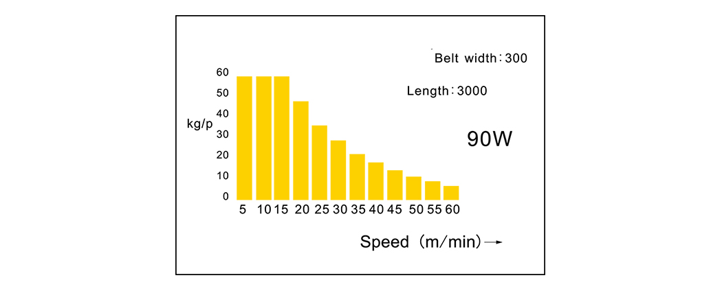 | Comprimento do transportador | 500 | 1000 | 1500 | 2000 | 2500 | 3000 | 3500 | 4000 | 5000 | 6000 | 7000 | 8000 | ||||||