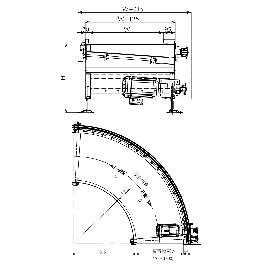 A máquina de girar a correia em torno é um equipamento de transmissão comum, usado principalmente para transferir materiais de uma linha de transportador de correia para outro transportador de correia de reversão de 90 graus ou 180 graus. Consiste em componentes como cintos, molduras, rolos de acionamento, rolos de reversão, paletes portadores de carga, rolos de retorno e dispositivos de tensionamento. O material da correia transportadora da máquina de girar a correia inclui vários materiais como PVC, PU, PVK, etc. Além de serem usados para transmitir materiais comuns, também pode atender ao transporte de materiais com requisitos especiais, como resistência ao óleo, ácido e corrosão alcalina e anti-estático.