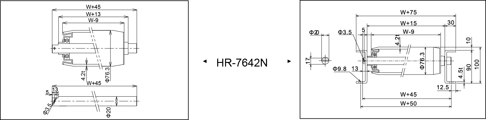 | Largura do transportador W 45 (mm) | 145 | 245 | 375 | 445 | |