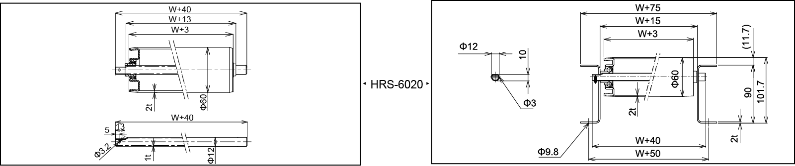| Largura do rolo W (mm) | 100 | 200 | 300 | 400 | 500 | |