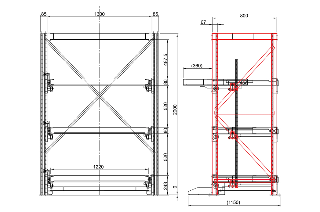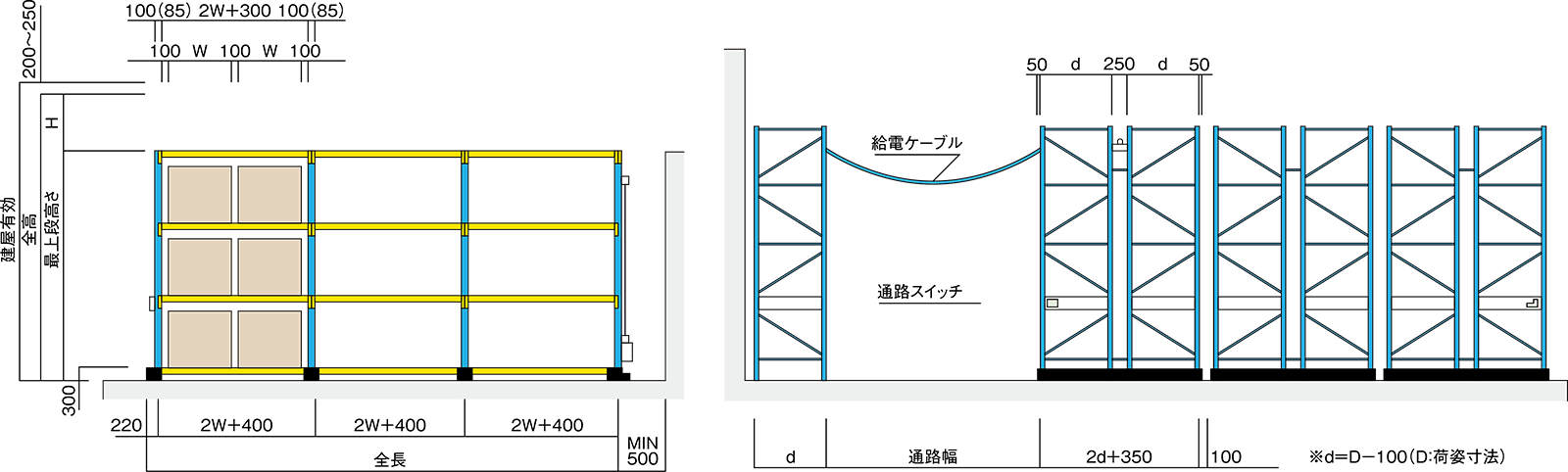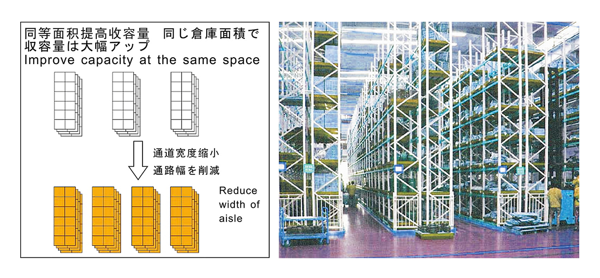 O guia diferente pode ser instalado de acordo com as empilhadeiras correspondentes, que podem reduzir a largura do corredor que passam e utilizar o espaço.