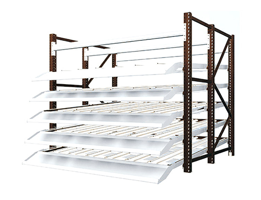 Funções O FLFO Gravity Rack é baseado na inclinação (4%) da trilha de slides e do peso morto das mercadorias. Os rolos retos da gravidade são usados como suporte para deslizar para baixo. A taxa de transferência do LTS é alta. O armazenamento e a recuperação podem ser realizados simultaneamente, de modo que a velocidade de fluxo das mercadorias aumenta. Propósitos O LT é adequado para armazenamento e recuperação de paletes ou de grande volume, com menos tipos de mercadorias. Cada faixa deslizante é usada para armazenar e recuperar o maior tipo de mercadoria possível. LT tem ampla aplicação em indústrias como mecânica, química, eletrônica, bebida e alimentos etc.