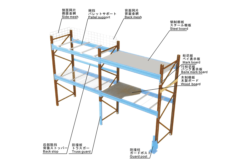 O rack médio é adequado para armazenar muitas variedades e poucas quantidades de mercadorias.