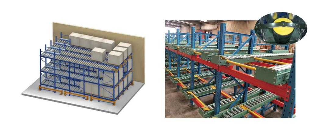 As prateleiras do tipo gravidade e as prateleiras de rolos deslizantes têm uma estrutura semelhante às prateleiras do tipo Beam, mas as faixas de roletes não alimentadas são instaladas nas vigas das prateleiras, e o ângulo de inclinação dos trilhos do rolo é geralmente de 2-5 °. As prateleiras da gravidade usam esse ângulo de inclinação e o peso das mercadorias para deslizar automaticamente de alto para baixo. As prateleiras da gravidade são adequadas para produtos para dentro, fora e de alto fluxo. Suas principais características são a alta utilização do espaço e a prateleira não requer energia externa. Eles são especialmente adequados para grandes gerenciamento de armazém, como centros de distribuição de armazenamento a frio e logística, e podem ser operados por empilhadeiras comuns Balanced.