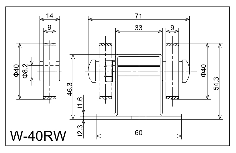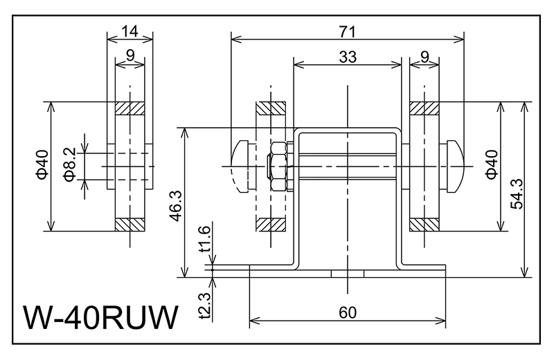 | W-40ruw | 40x9x8.2x14 | M8X55L | 46.3x60x33x71 × 23 | 54.3 | 1800 · 2400 · 3000 | 50 · 75 · 100 · 150 | 30 | K | PU |