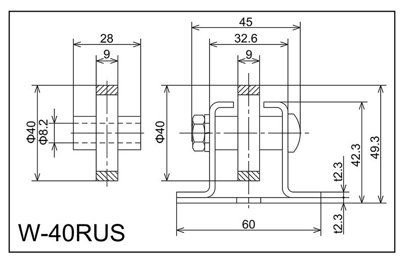| W-40RUS | 40x9x8.2x28 | M8X40L | 42.3x60x32.6x45x2.3 | 49.3 | 1800 · 2400 · 3000 | 50 · 75 · 100 · 150 | 30 | J | PU |