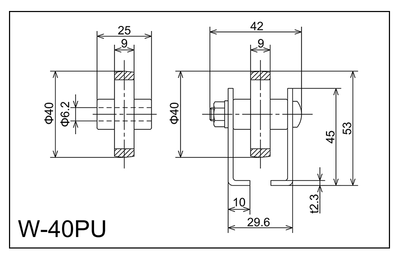 | W-40PU | 40x9x6.2x25 | M6x38l | 45x29.6x10x42x2.3 | 53 | 1800 · 2400 · 3000 | 50 · 75 · 100 · 150 | 30 | A | PU |