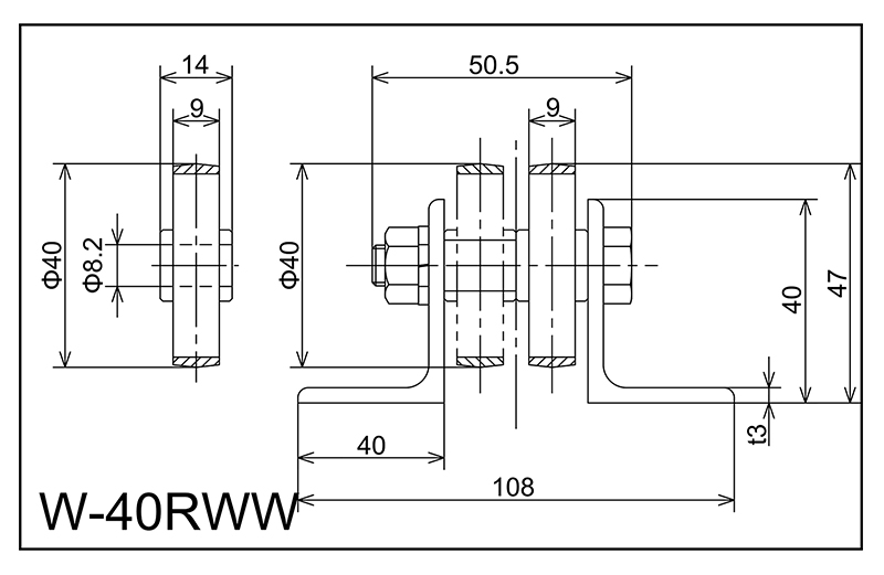 | W-40rww | 40x9x8.2x14 | M8X45L | 40x108x40x50.5x3 | 47 | 1000 · 2000 · 3000 | 30 · 40 · 50 · 75 | 20 | M | NBR |