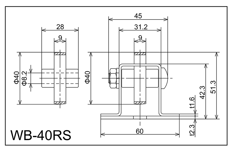 | WB-40rs | 40x9x8.2x28 | M8X40L | 42.3x60x31.2x45 × 23 | 51.3 | 1800 · 2400 · 3000 | 50 · 75 · 100 | 20 | F | NBR |