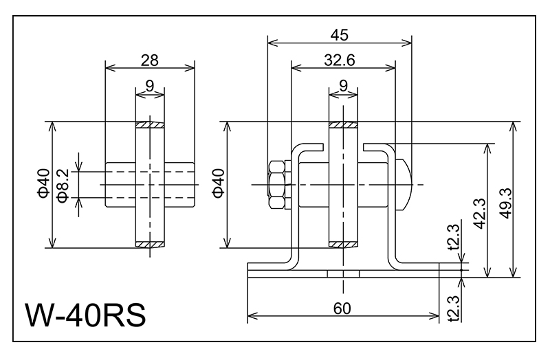 | W-40rs | 40x9x8.2x28 | M8X40L | 42.3x60x32.6x45x2.3 | 49.3 | 1800 · 2400 · 3000 | 50 · 75 · 100 · 150 | 20 | J | NBR |