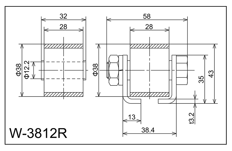 | W-3812r | 38x28x12.2x32 | M12X50L | 35x38.4x13x58x3.2 | 43 | 1000 · 1500 · 2000 | 40 · 70 · 100 | 80 | A | NBR |