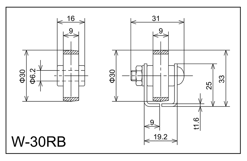 | W-30RB | 30x9x6.2x16 | M6X27L | 25x19.2x9x31x1.6 | 33 | 1000 · 1500 · 2000 | 35 | 25 | A | NBR |